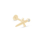 Look fierce yet stylish in these dagger cartilage studs. Designed in brightly polished solid 14k gold, these cartilage studs are easy to mix and match with other earrings. This sleek dagger features a cubic zirconia adorned hilt. A symbol of protection, this dagger cartilage earring adds ferocity to your ear stack.