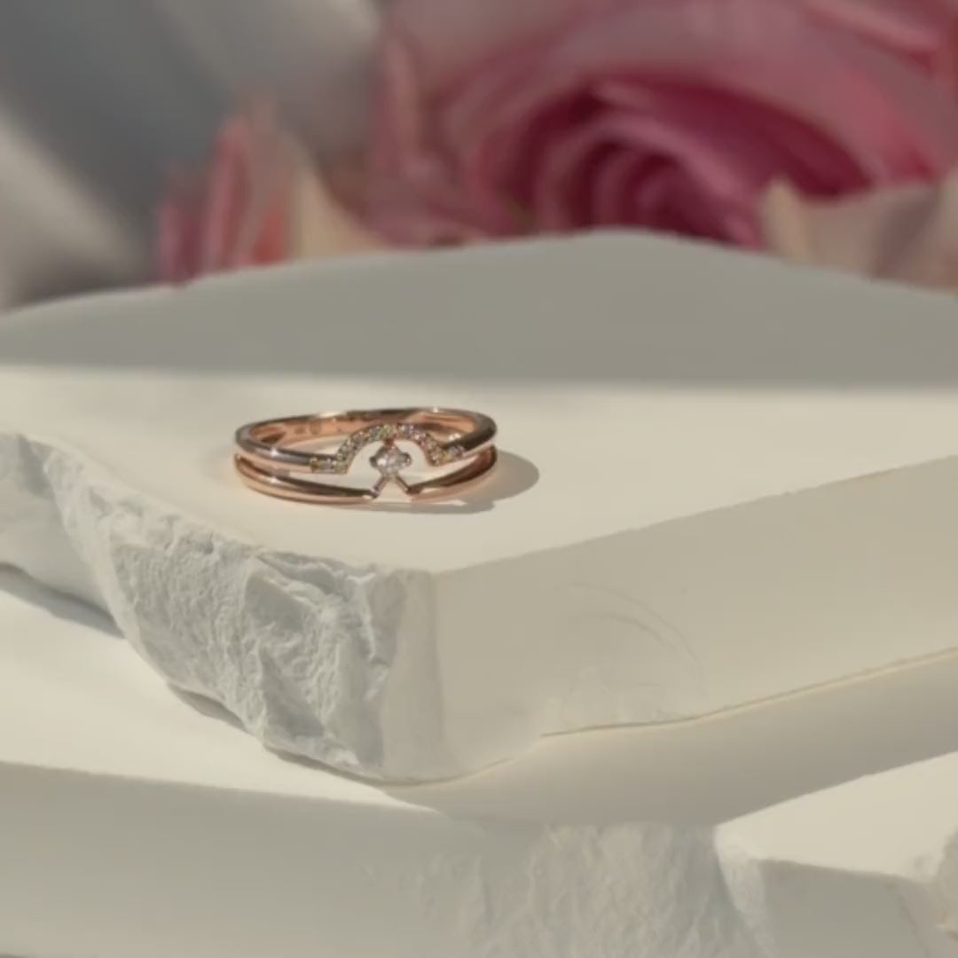 Diamond Curve Double Layer Band in Solid 14k Rose Gold