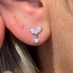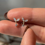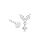 Double Marquise Gemstone Drop Flat Back Stud Earrings in Solid 14k White Gold