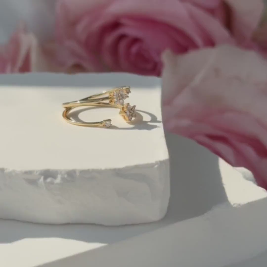 Floating Diamond Flower Wrap Ring in Solid 14k Yellow Gold