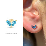 London Blue Topaz Double Marquise Flat Back Stud Earrings in Solid 14k Yellow Gold
