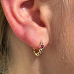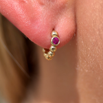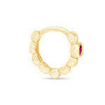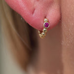 Ruby Beaded Hoop in Solid 14k Yellow Gold