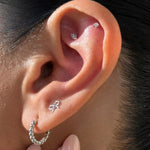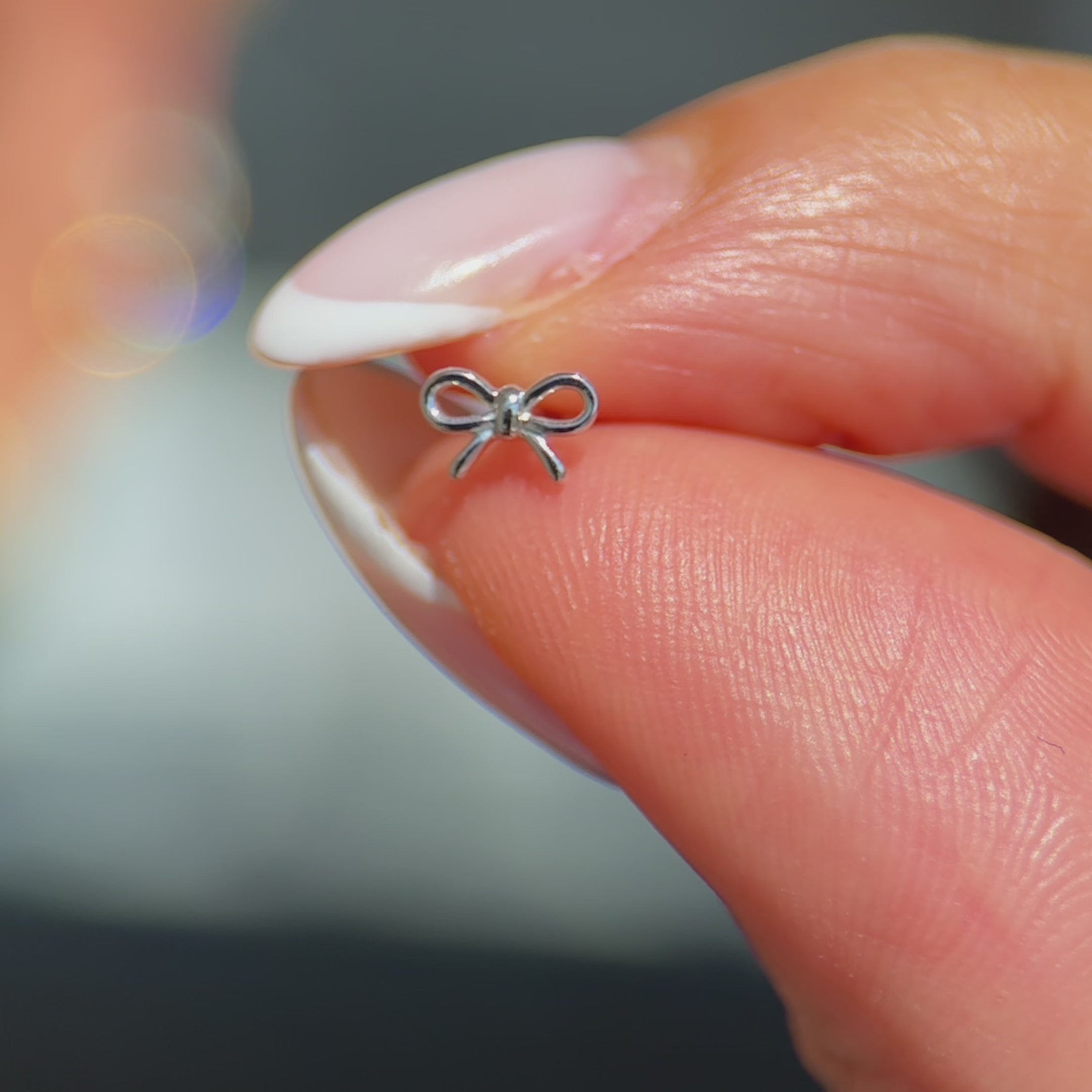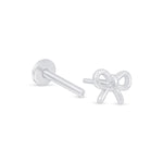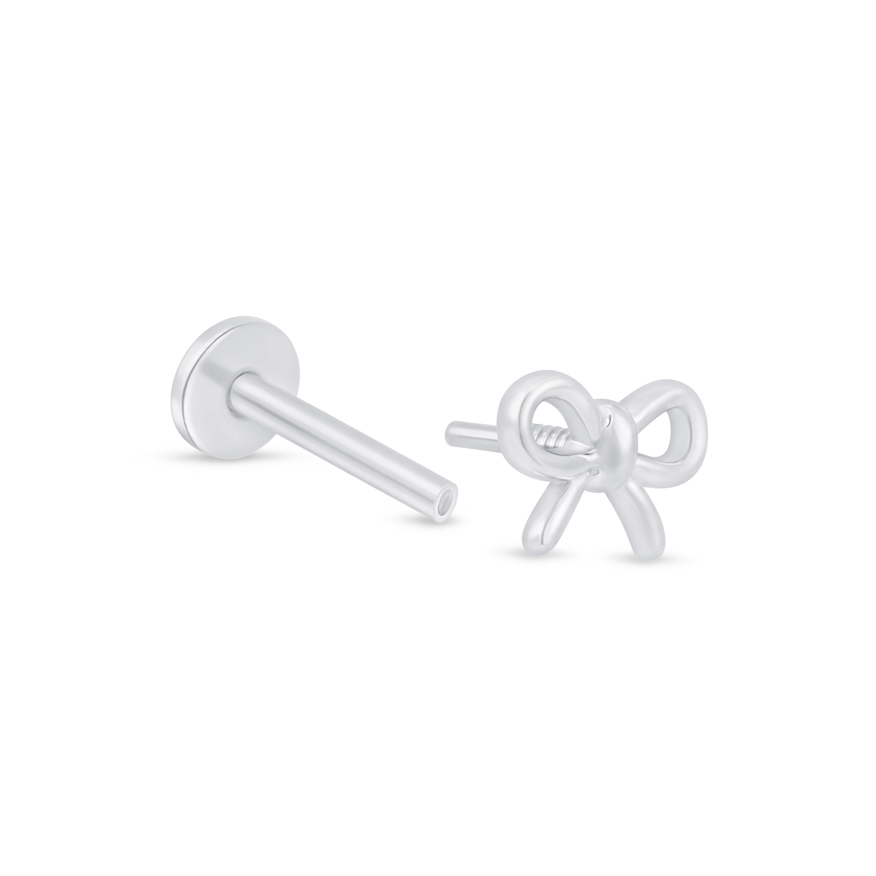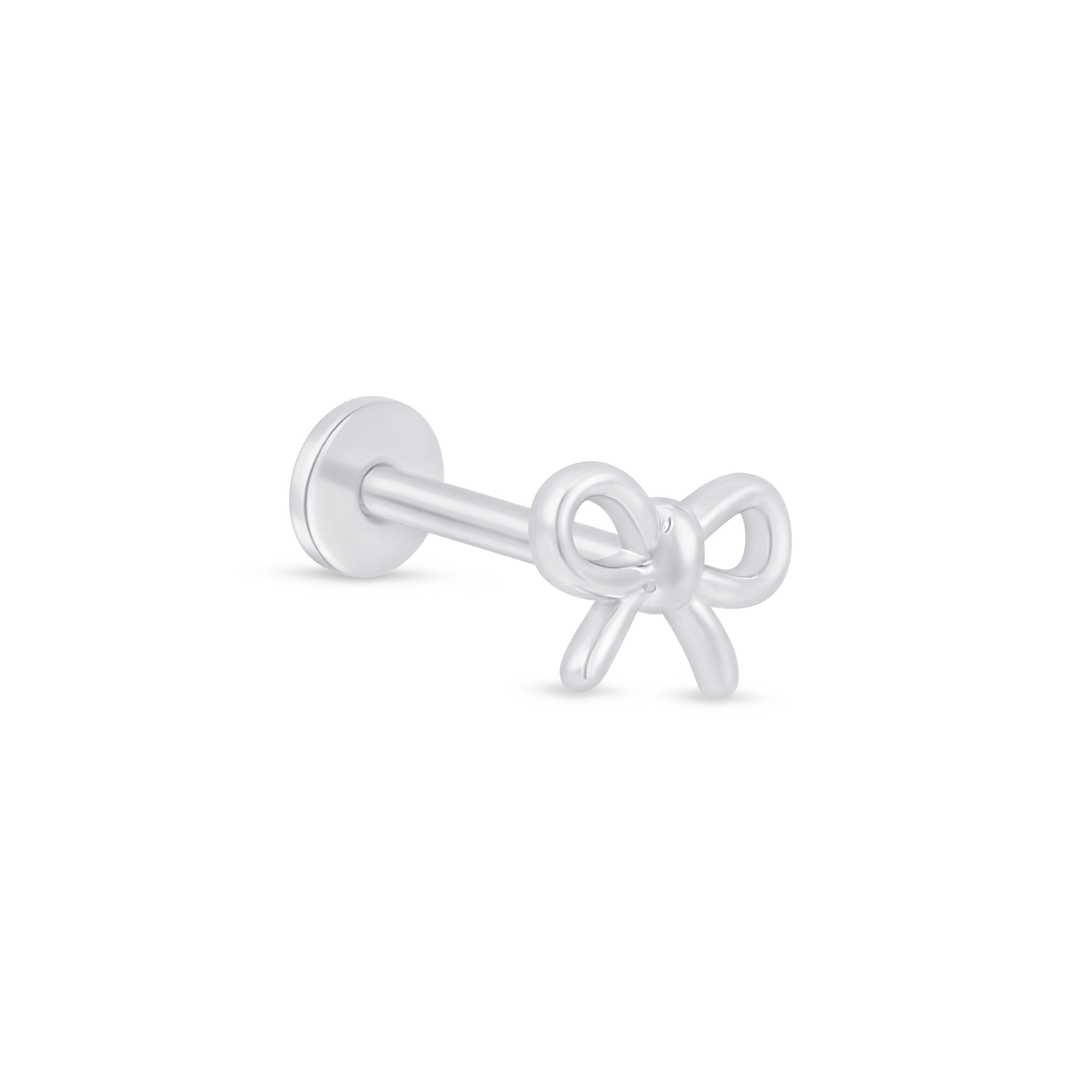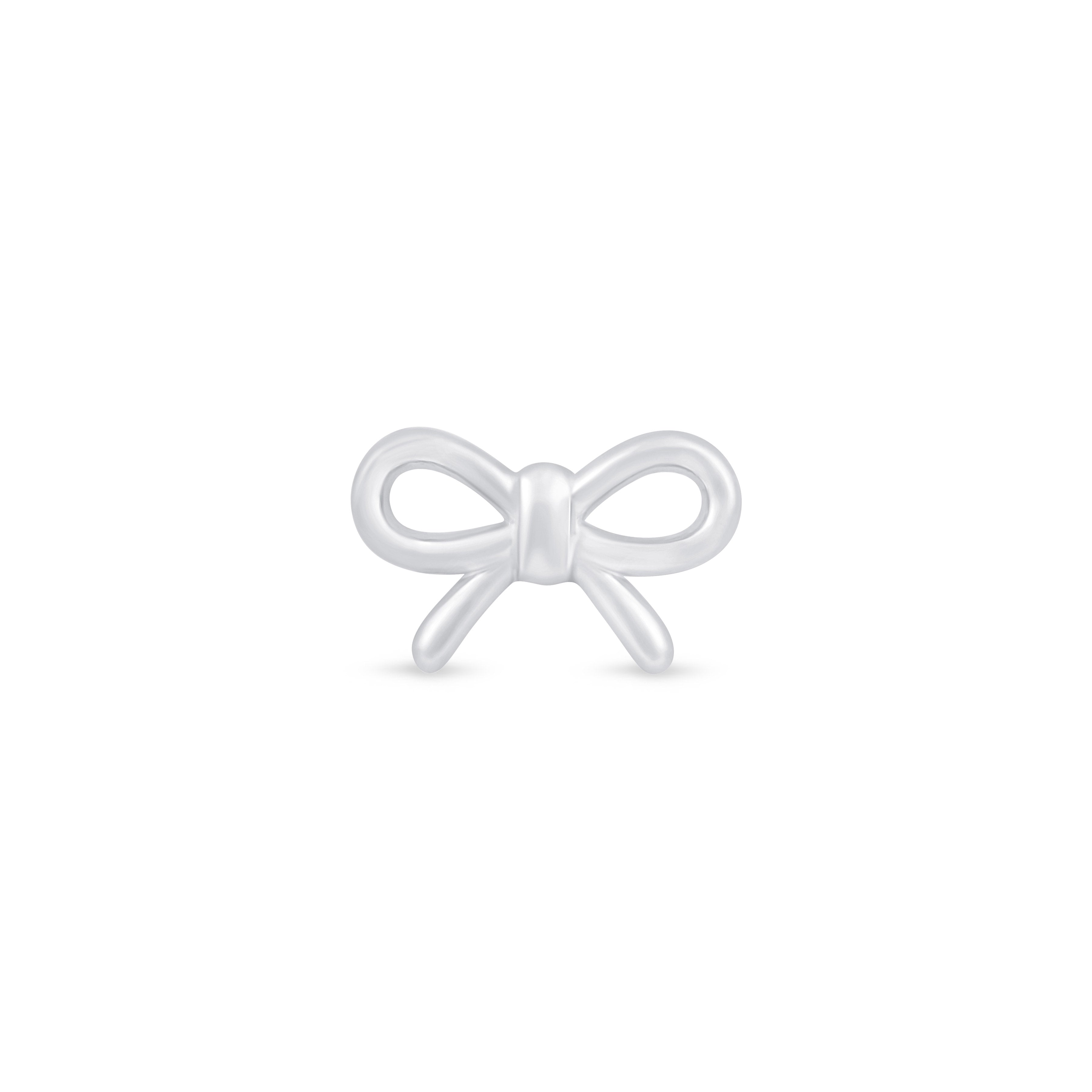 Add a delicate touch to your ear stack with this solid 14K white gold bow knot stud. Its dainty ribbon design offers a playful yet elegant accent, perfect for helix, tragus, or lobe piercings.