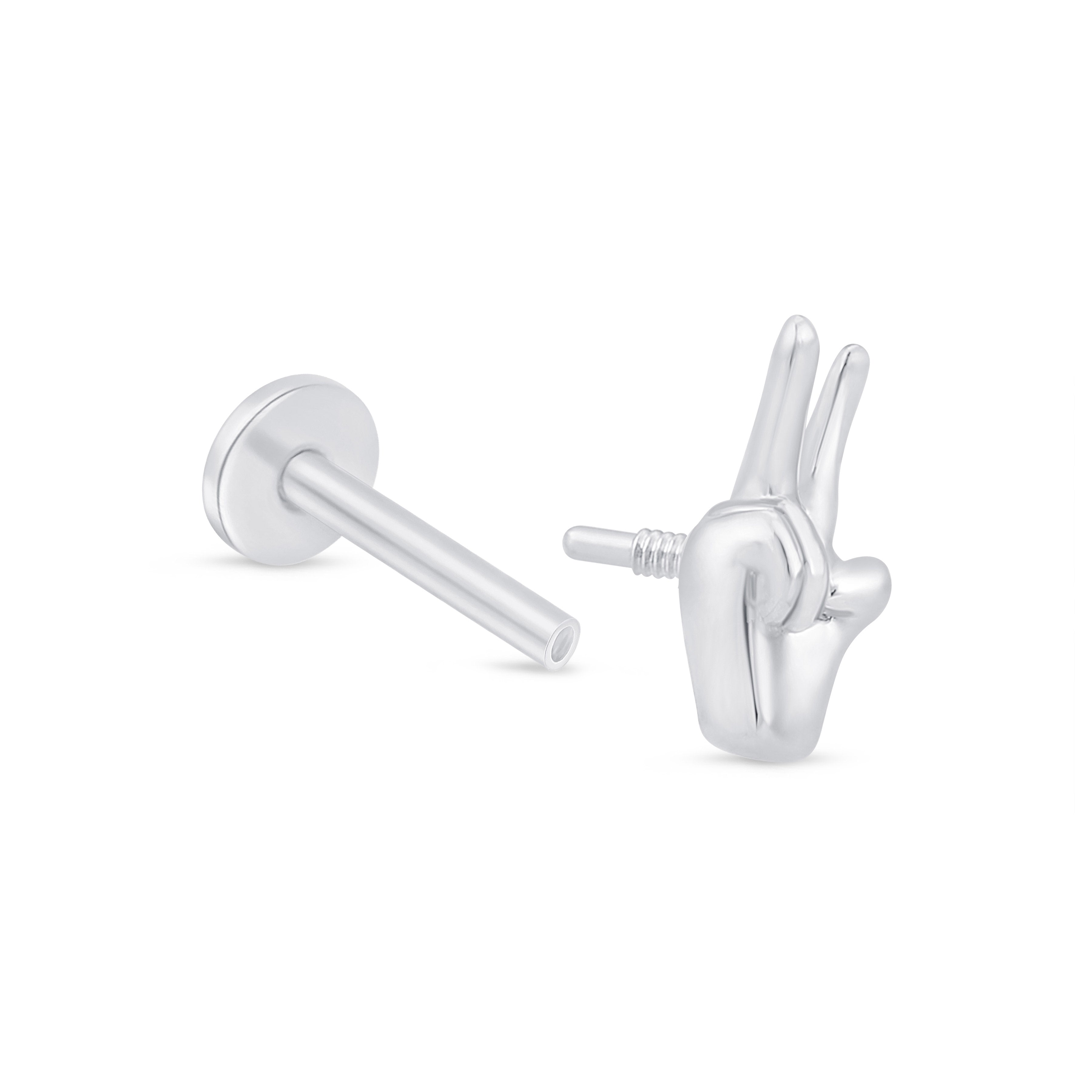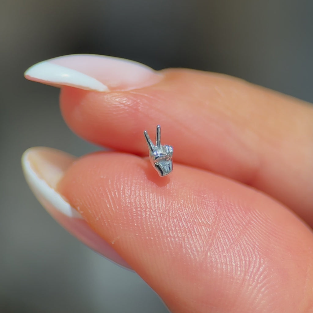Embrace both meaning and style with this 14k solid gold peace hand stud earring. Designed with a sleek, minimalist look, it’s a versatile choice for cartilage, helix, tragus, or lobe piercings. Lightweight and hypoallergenic, this stud provides lasting comfort while adding a symbolic, modern touch to your everyday jewelry collection.