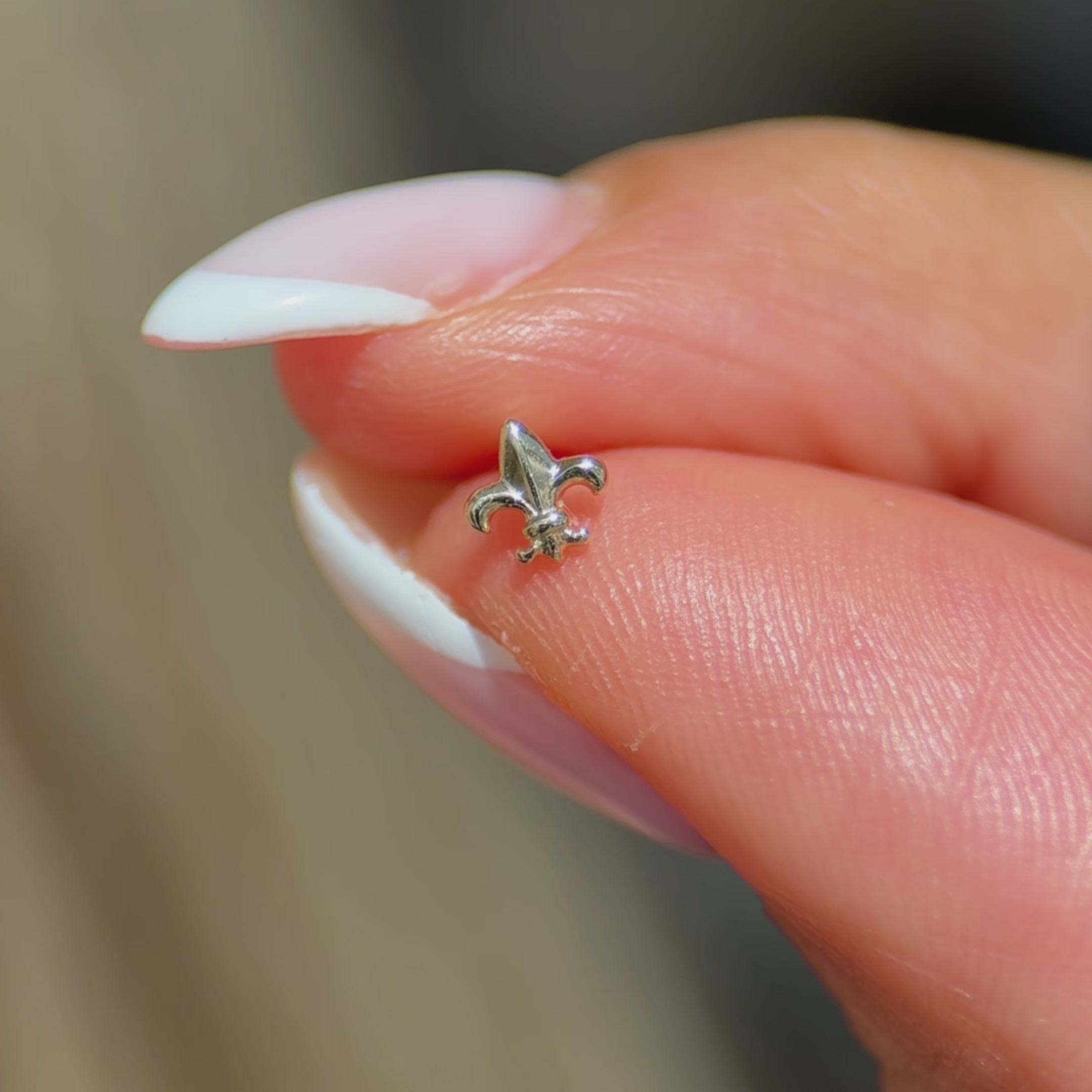 Bring timeless charm to your style with this dainty fleur-de-lis stud earring, beautifully crafted in 14k solid gold. Inspired by the classic French symbol, which represents elegance, tradition, and a stylized lily flower, this minimalist piece suits helix, cartilage, tragus, or lobe piercings with ease. Its graceful design adds a versatile accent, perfect for everyday wear or layering in a curated ear stack.