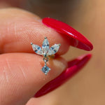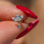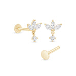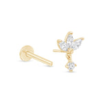 Add a touch of elegance with our 14k gold three marquise flower dangle flat back earring. Designed with three shimmering marquise-cut stones forming a delicate floral shape, and a sparkling dangle for added charm. Perfect for cartilage, helix, and tragus piercings. Crafted in solid gold for lasting beauty and comfort.